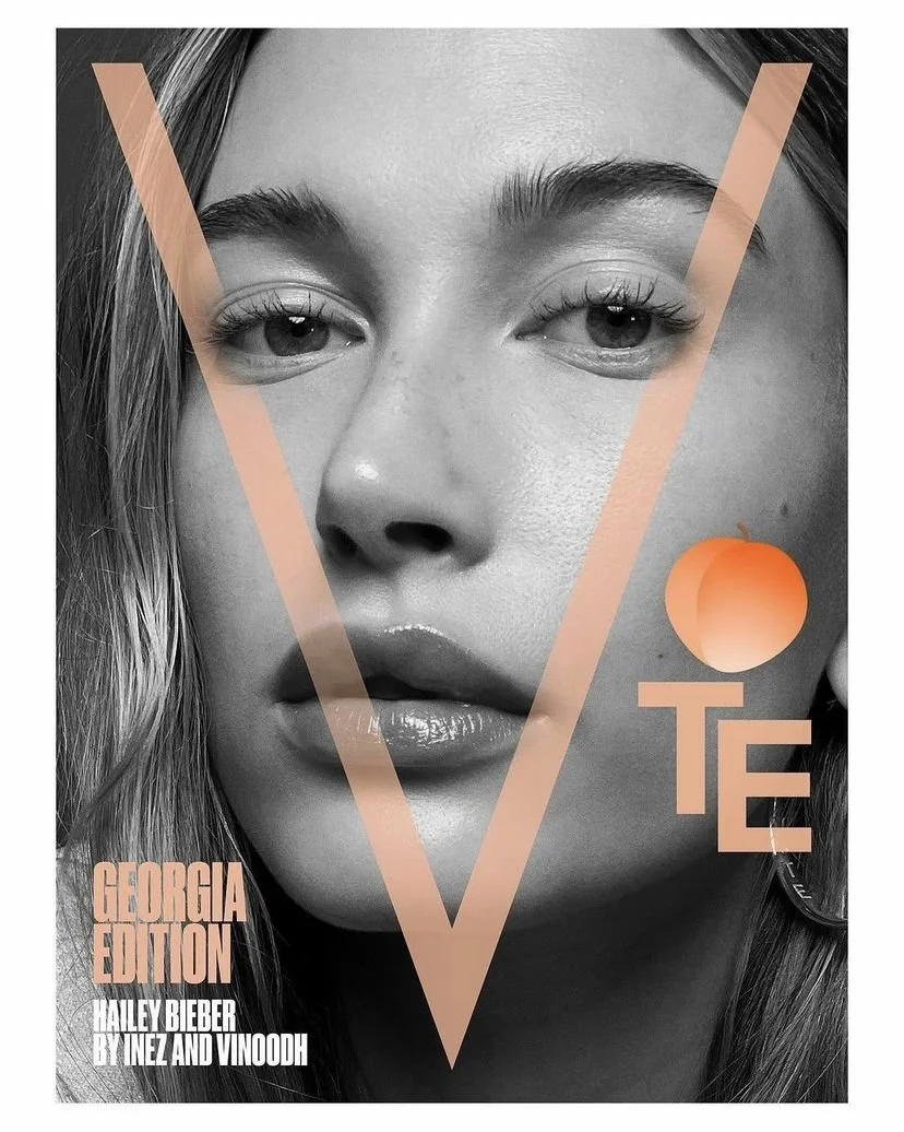 Hailey wears the Duet Hoops for V Magazine.